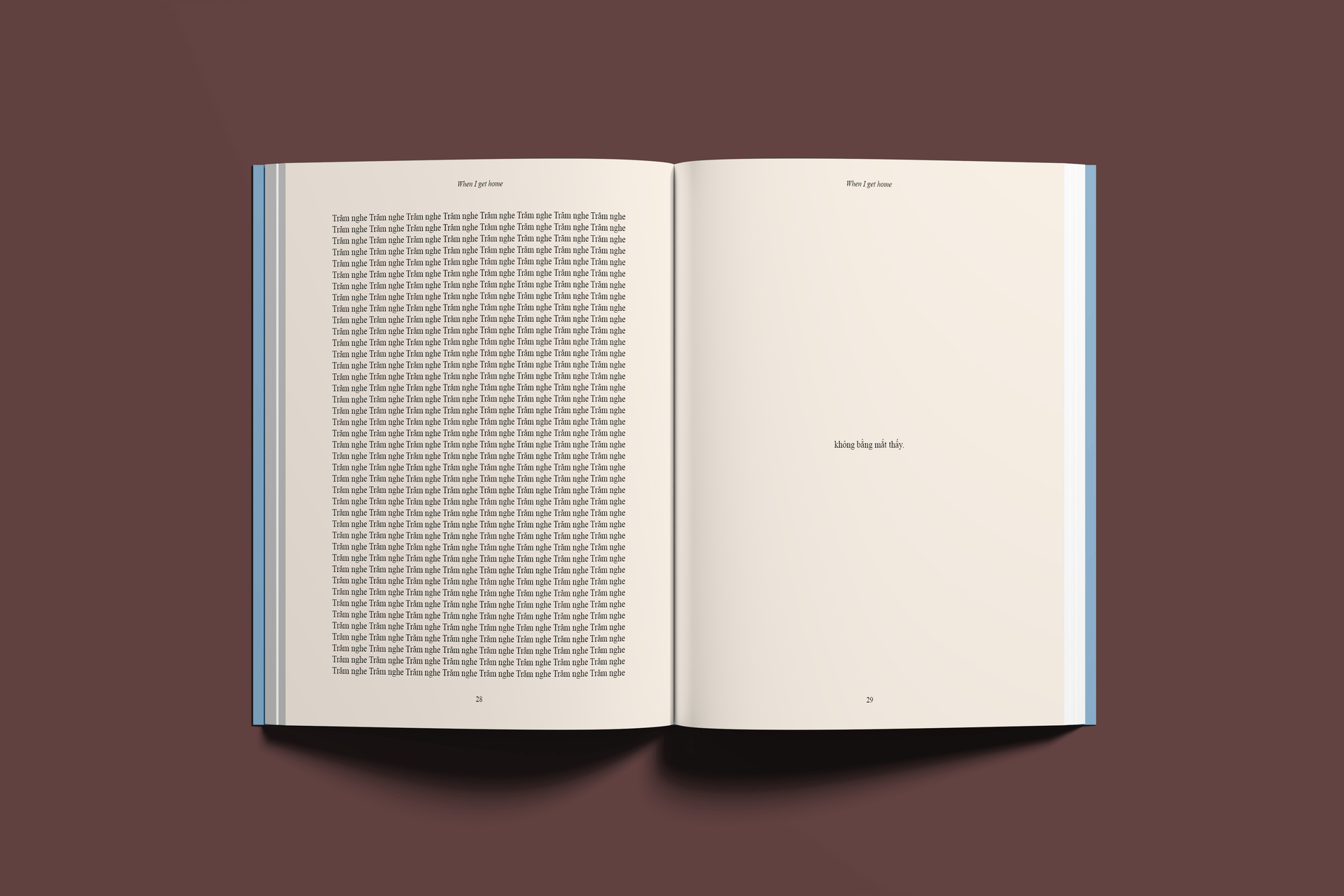 “When I get home” is a collection of poems and stories that I grew up hearing not just from the people surrounding me, but also family. Ever since moving to the States, I felt the absence of home, the mundane, the everyday people, the architectures that I was surrounded with; to me, those things became my home, they are the highest innovation of me. My intention for this project with minimalism influence and intentional placement to communicate the relationship between inner self with space, absence and presence.